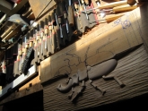 Voor iedere cursist is er een foedraal met 10 topkwaliteit gutsen van het Zwitserse merk Pfeil beschikbaar. Plus flessen-hamers, een Tormek slijpmachine en al het andere benodigde gereedschap.